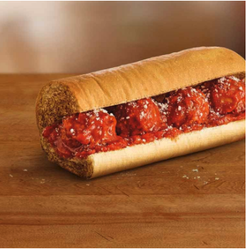 It’s the mother of all meatball subs. Juicy meatballs drenched in marinara sauce with slices of pepperoni and provolone. Sprinkled with parmesan and served toasted on Italian Herbs & Cheese bread.
