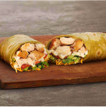When you want to be 100% satisfied, this wrap delivers. Tender grilled chicken, with fresh veggies like lettuce, spinach, tomatoes, cucumbers, green peppers and red onions in a wrap.